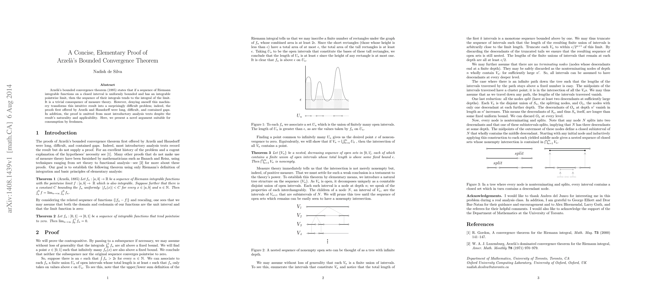 Arzel\`a's bounded convergence theorem (1885) states that if a sequence of Riemann integrable functions on a closed interval is uniformly bounded and has an integrable pointwise limit, then the sequence of their integrals tends to the integral of the limit. It is a trivial consequence of measure theory. However, denying oneself this machinery transforms this intuitive result into a surprisingly difficult problem; indeed, the proofs first offered by Arzel\`a and Hausdorff were long, difficult, and contained gaps. In addition, the proof is omitted from most introductory analysis texts despite the result's naturality and applicability. Here, we present a novel argument suitable for consumption by freshmen.