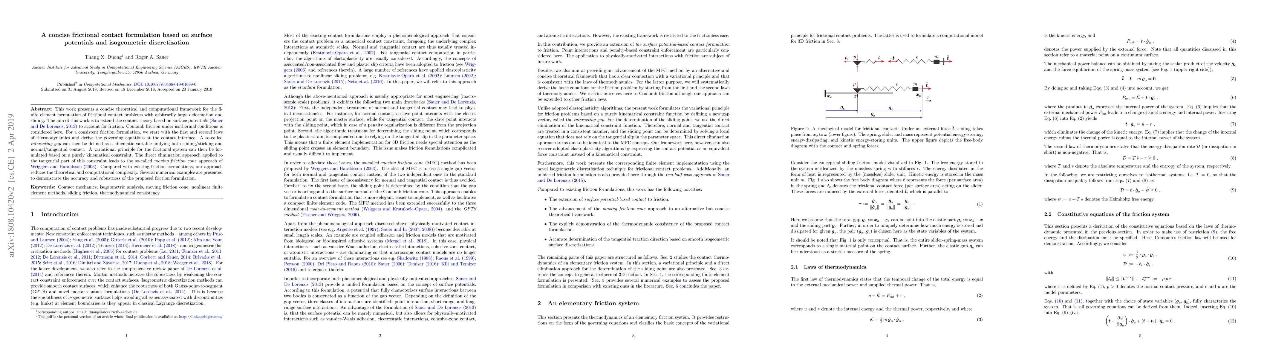 Researchers developed a new method for simulating friction in materials with large deformation, reducing complexity and improving accuracy. Their approach uses surface potentials and isogeometric discretization to create a more robust and efficient friction formulation.