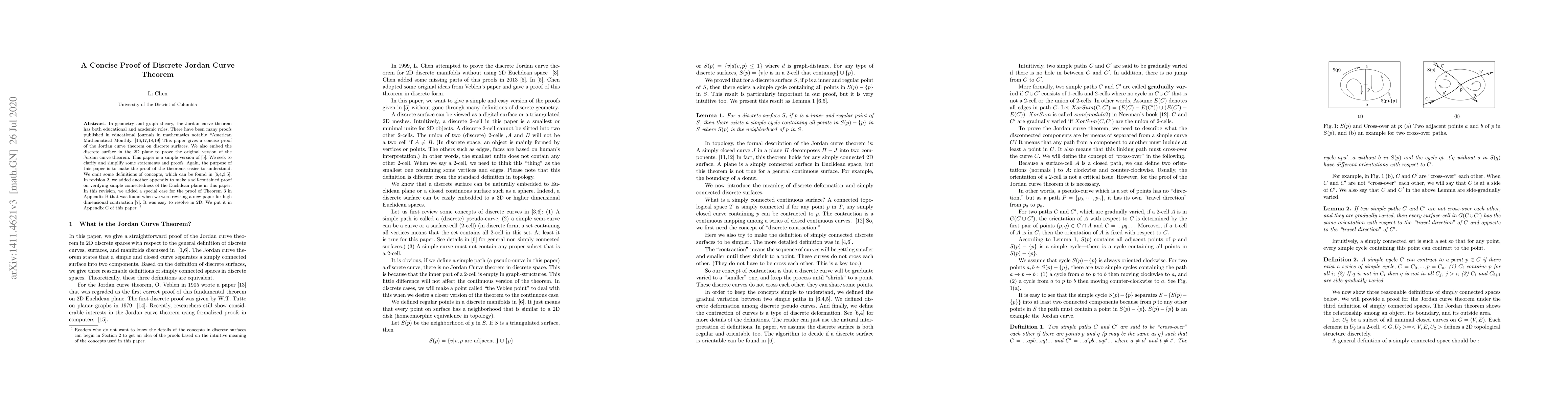 The paper introduces a simplified proof technique for the Jordan Curve Theorem on discrete surfaces, enhancing clarity and accessibility of the original theorem's proof.