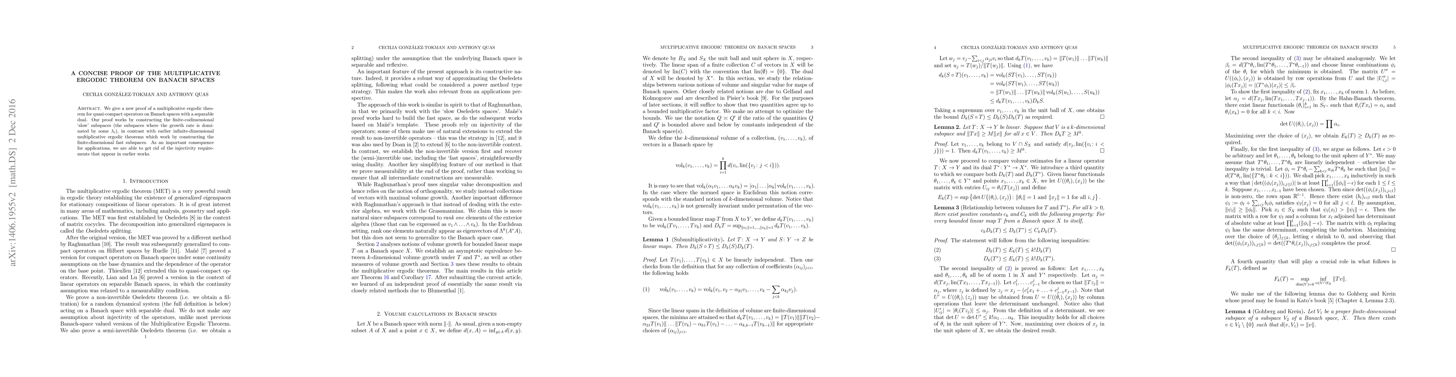 Summary: This paper presents a simplified proof of the multiplicative ergodic theorem for quasi-compact operators in Banach spaces with a separable dual, enhancing the understanding of the theorem's applicability in functional analysis.