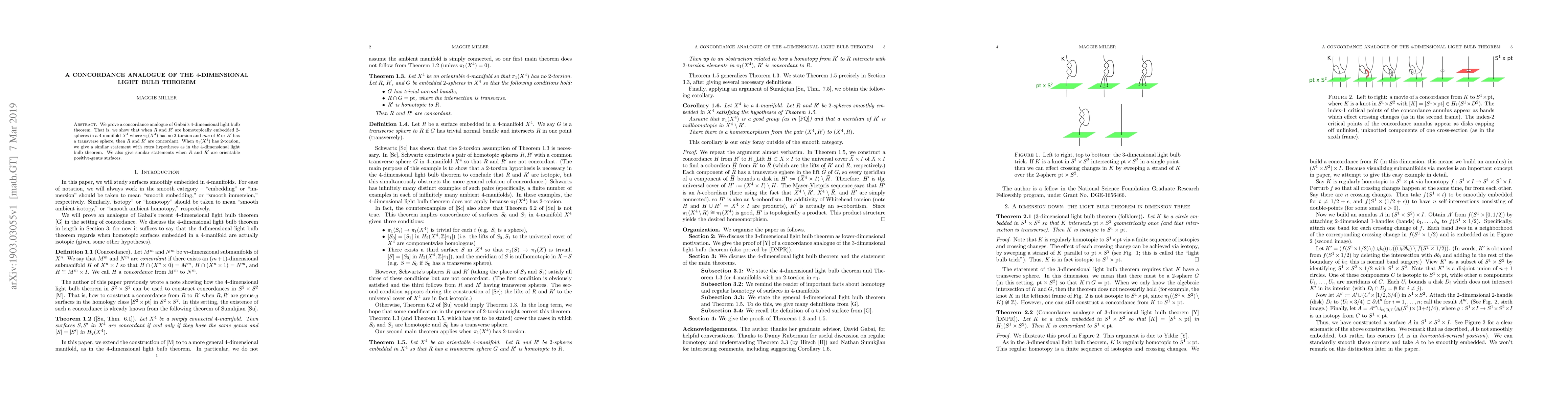 This paper proves a concordance analogue of Gabai's $4$-dimensional light bulb theorem, showing that certain homotopically embedded $2$-spheres in $4$-manifolds are concordant under specific conditions, with additional hypotheses when $\pi_1(X^4)$ has $2$-torsion. Similar results are also established for orientable positive-genus surfaces.