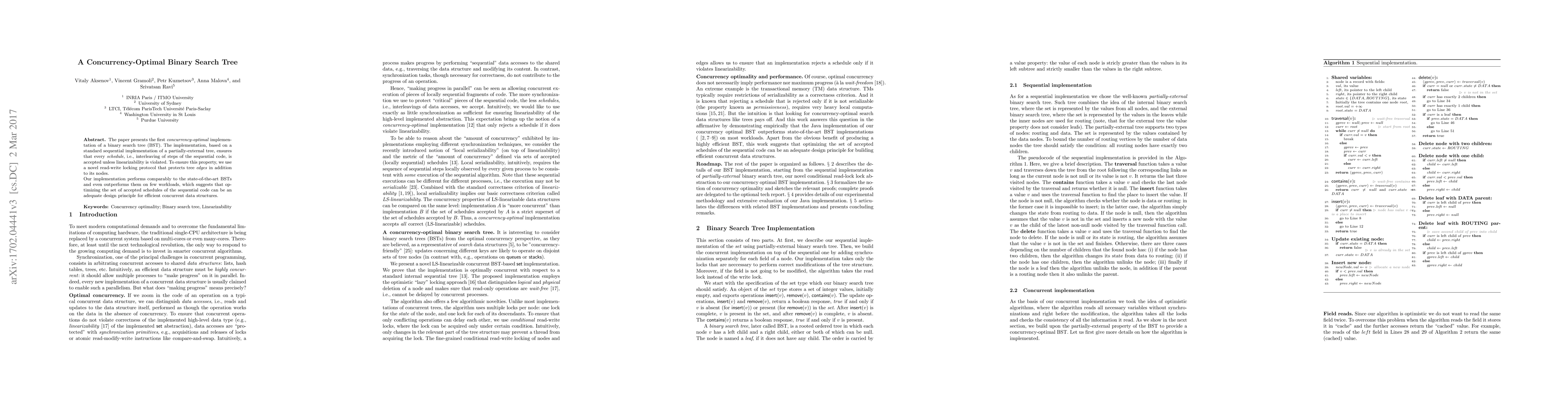The paper introduces a concurrency-optimal binary search tree implementation that accepts every schedule without violating linearizability, using a novel read-write locking scheme on tree edges. This approach outperforms existing BSTs, indicating that optimizing accepted schedules can enhance concurrent data structure efficiency.