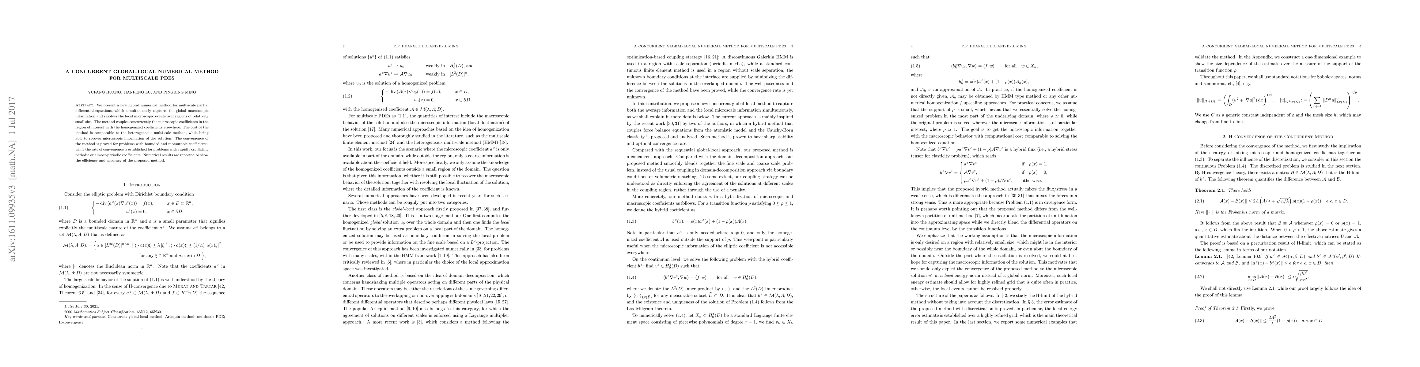 This paper introduces a concurrent global-local numerical method for solving multiscale PDEs, effectively capturing both macroscopic and microscopic details. The method is efficient, comparable in cost to the heterogeneous multiscale method, and demonstrates convergence for various coefficient types, with numerical results confirming its accuracy and efficiency.