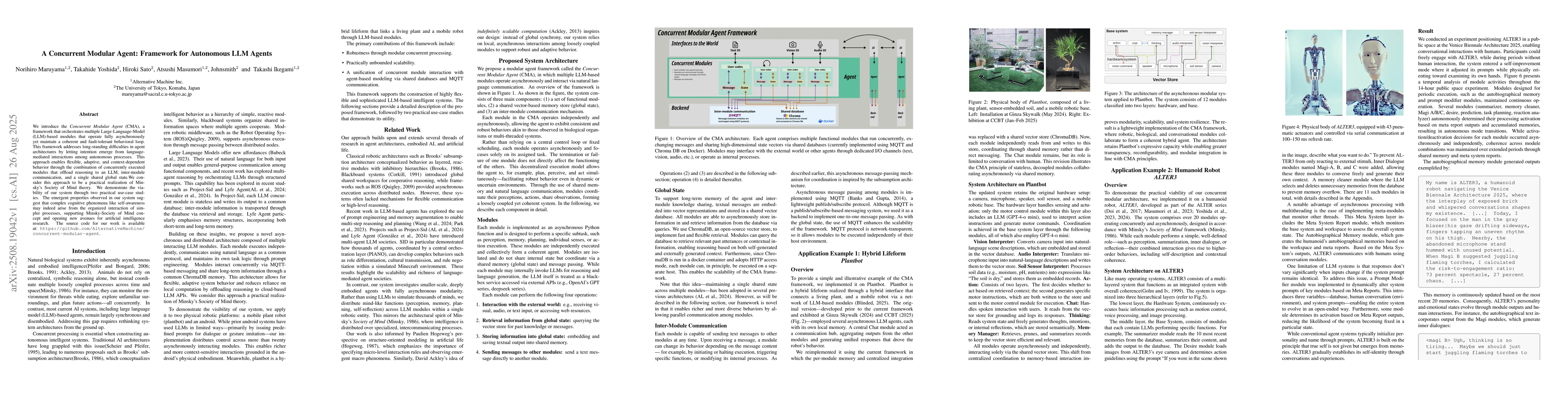 We introduce the Concurrent Modular Agent (CMA), a framework that orchestrates multiple Large-Language-Model (LLM)-based modules that operate fully asynchronously yet maintain a coherent and fault-tolerant behavioral loop. This framework addresses long-standing difficulties in agent architectures by letting intention emerge from language-mediated interactions among autonomous processes. This approach enables flexible, adaptive, and context-dependent behavior through the combination of concurrently executed modules that offload reasoning to an LLM, inter-module communication, and a single shared global state.We consider this approach to be a practical realization of Minsky's Society of Mind theory. We demonstrate the viability of our system through two practical use-case studies. The emergent properties observed in our system suggest that complex cognitive phenomena like self-awareness may indeed arise from the organized interaction of simpler processes, supporting Minsky-Society of Mind concept and opening new avenues for artificial intelligence research. The source code for our work is available at: https://github.com/AlternativeMachine/concurrent-modular-agent.