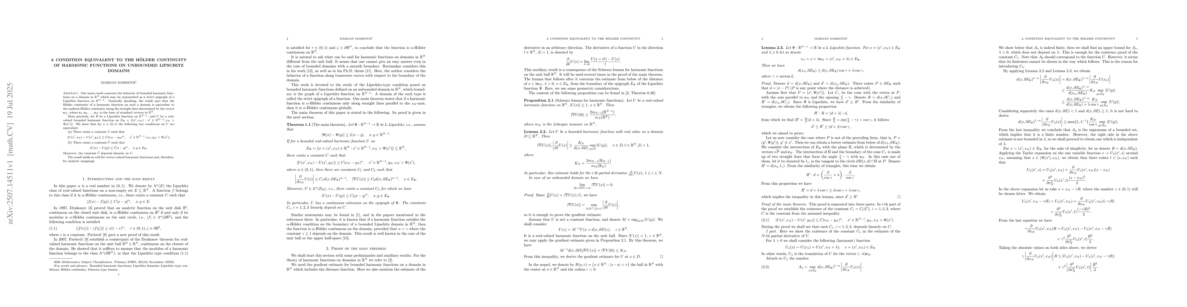 Our main result concerns the behavior of bounded harmonic functions on a domain in $\mathbb{R}^N$ which may be represented as a strict epigraph of a Lipschitz function on $\mathbb{R}^{N-1}$. Generally speaking, the result says that the H\"{o}lder continuity of a harmonic function on such a domain is equivalent to the uniform H\"{o}lder continuity along the straight lines determined by the vector $\mathbf{e}_N$, where $\mathbf{e}_1,\mathbf{e}_2,\dots,\mathbf {e}_N$ is the base of standard vectors in $\mathbb{R}^N$. More precisely, let $\Psi$ be a Lipschitz function on $\mathbb {R}^{N-1}$, and $U$ be a real-valued bounded harmonic function on $E_\Psi=\{(x',x_N): x'\in\mathbb{R}^{N-1}, x_N>\Psi(x')\}$. We show that for $\alpha\in(0,1)$ the following two conditions on $U$ are equivalent: (a) There exists a constant $C$ such that \begin{equation*} | U(x',x_N) - U(x',y_N)|\le C |x_N - y_N|^\alpha,\quad x'\in \mathbb {R}^{N-1}, x_N, y_N > \Psi (x'); \end{equation*} (b) There exists a constant $\tilde {C}$ such that \begin{equation*} |U(x) - U (y)|\le \tilde{C} |x-y|^\alpha,\quad x, y\in E_\Psi. \end{equation*} Moreover, the constant $\tilde {C}$ depends linearly on $C$. The result holds as well for vector-valued harmonic functions and, therefore, for analytic mappings.