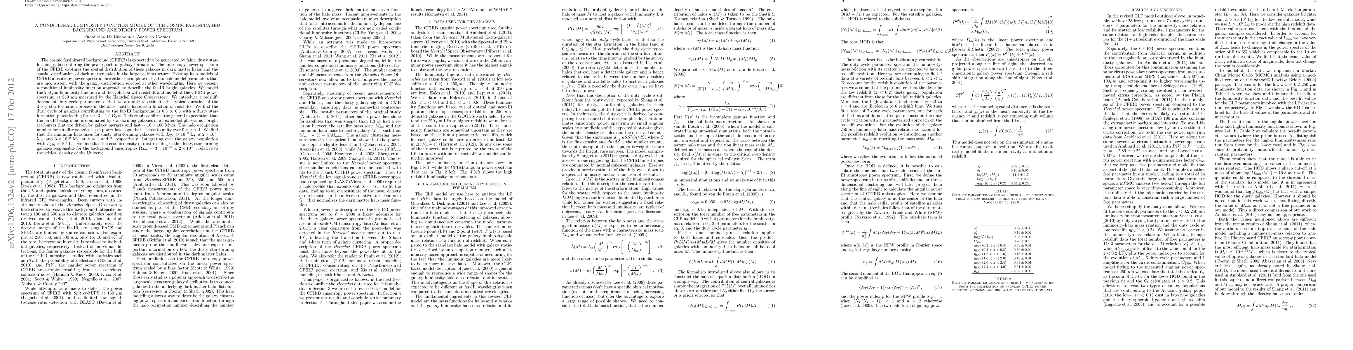 redshift and model-fit the CFIRB power spectrum at 250 um measured by the