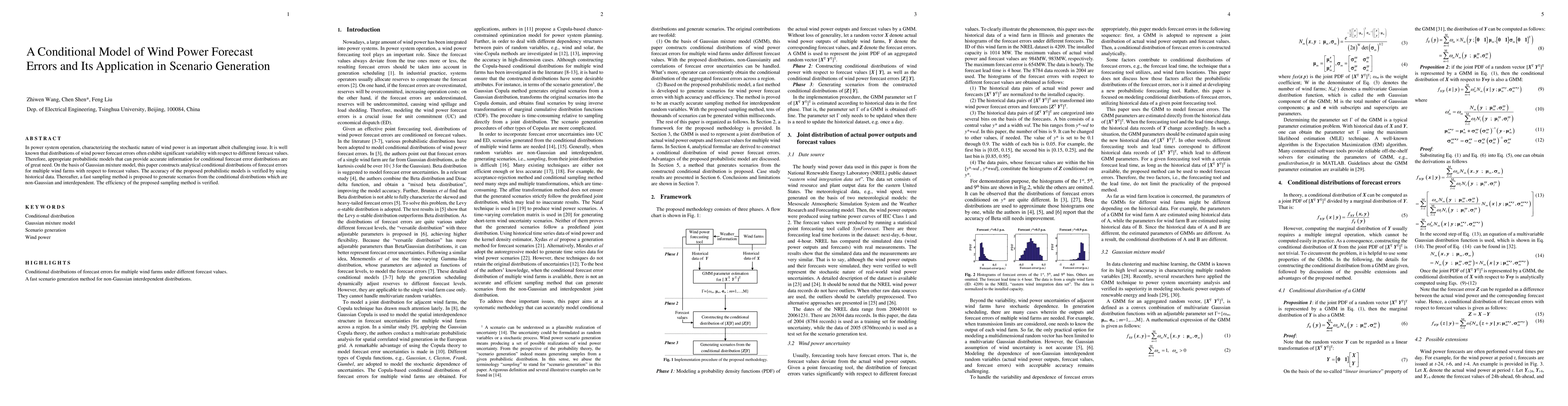 This paper develops a Gaussian mixture model to create conditional distributions for wind power forecast errors, validated with historical data. It also proposes a fast sampling method to generate non-Gaussian, interdependent scenarios, demonstrating the method's efficiency.