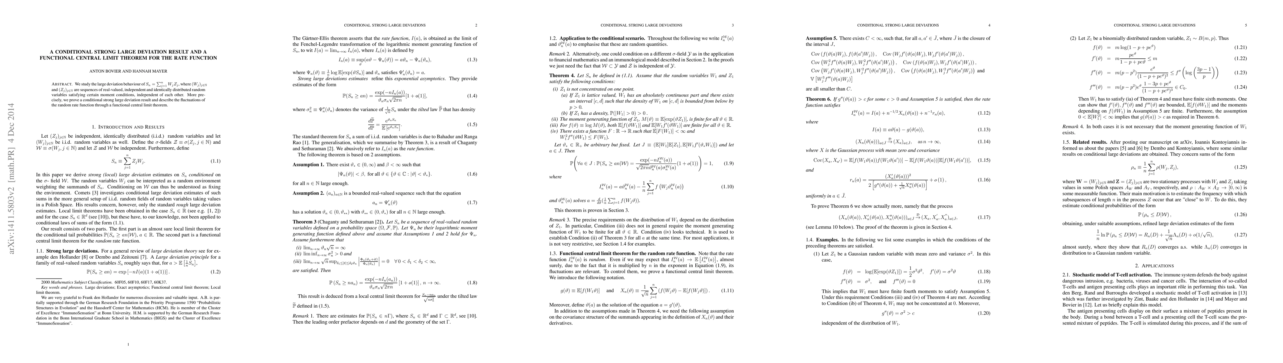 This paper investigates the large deviation behavior of the sum $S_n=\sum_{j=1}^n W_jZ_j$, where $W_j$ and $Z_j$ are independent, identically distributed random sequences. It proves a conditional strong large deviation result and uses a functional central limit theorem to describe the fluctuations of the rate function.