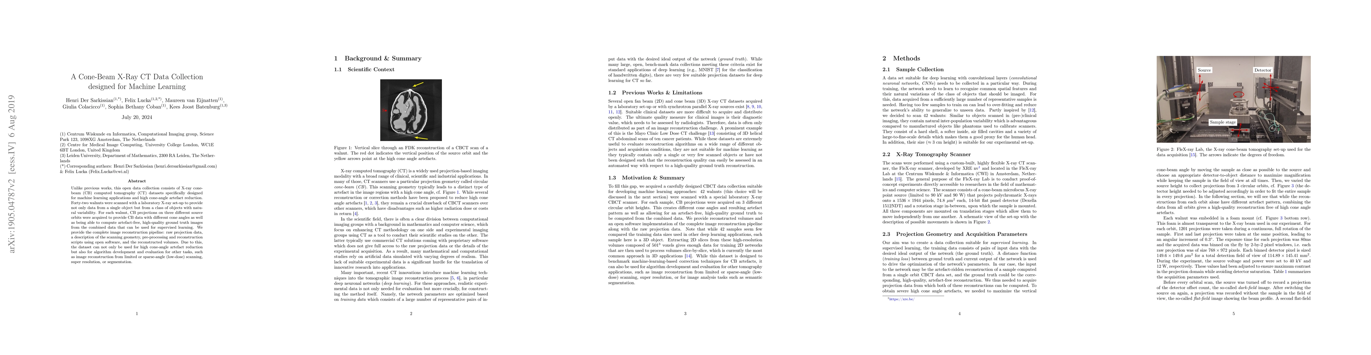 A new dataset of X-ray cone-beam CT scans is released for machine learning applications, offering high-quality images with reduced artefacts, and can be used for tasks beyond just artefact reduction.