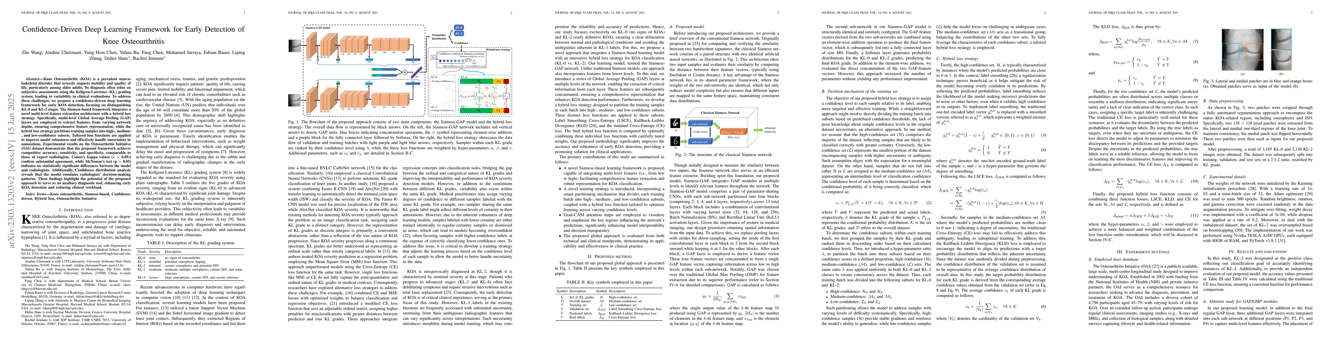 This paper proposes a novel Siamese-based network with a hybrid loss strategy for early detection of Knee Osteoarthritis (KOA), utilizing Global Average Pooling layers and a confidence-based training method to enhance classification performance, leading to significant improvements in detection accuracy.
