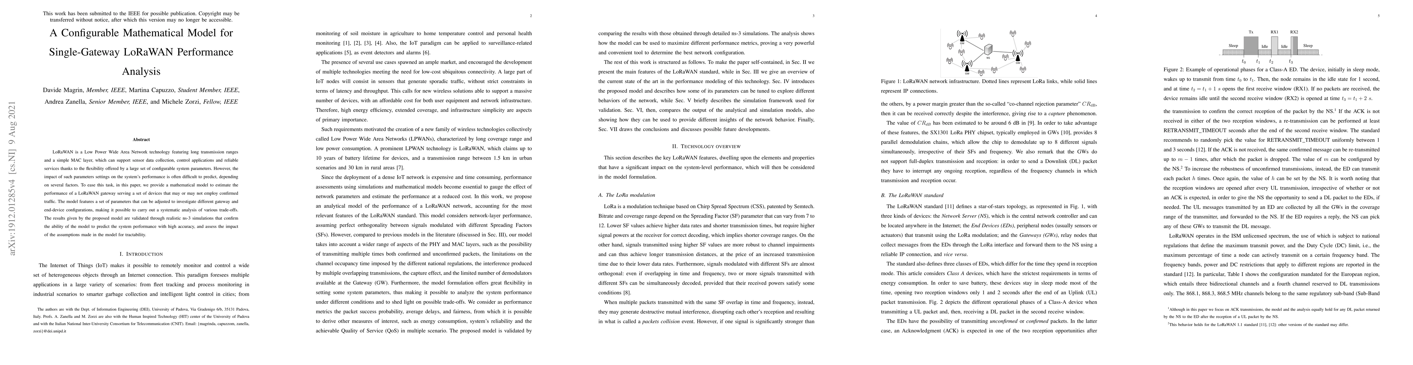This paper presents a configurable mathematical model to estimate the performance of LoRaWAN networks with single gateways, allowing for analysis of various configurations. The model's accuracy is validated through ns-3 simulations, demonstrating its effectiveness in predicting system performance and assessing configuration trade-offs.
