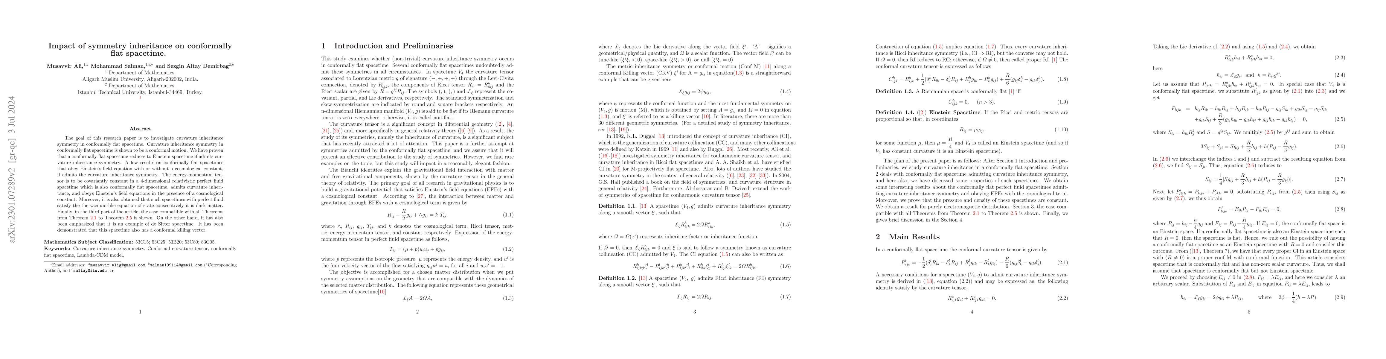 This paper explores curvature inheritance in conformally flat spacetimes, demonstrating that curvature inheritance symmetry leads to conformal motion and identifies such spacetimes as those of Einstein's theory with a cosmological term, which also exhibit a vacuum-like equation of state akin to dark matter.