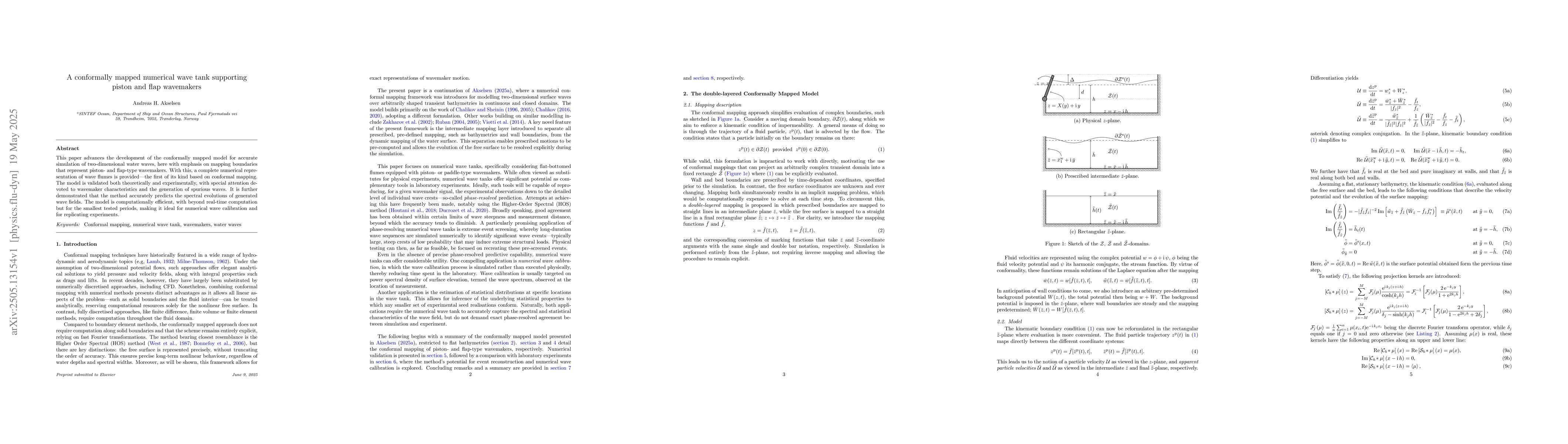 The paper presents a conformally mapped numerical wave tank model that supports piston and flap wavemakers, offering a complete numerical representation of wave flumes.