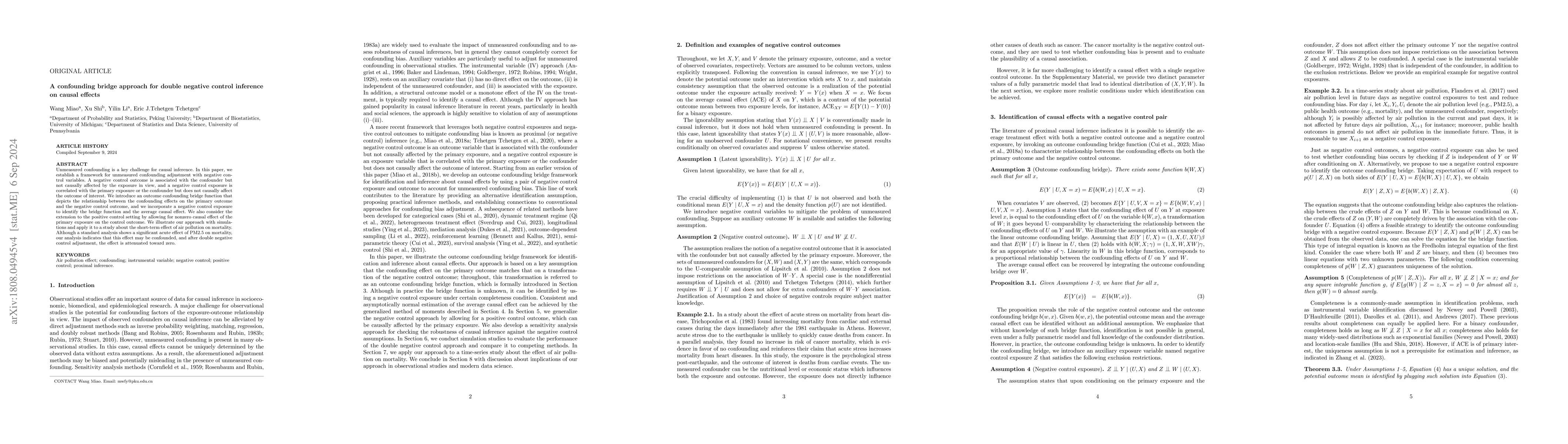 This paper proposes a framework using double negative control variables to adjust for unmeasured confounding in causal inference. It introduces a confounding bridge function and employs a negative control exposure to identify the bridge and the average causal effect, demonstrating its application in assessing the effect of air pollution on mortality.