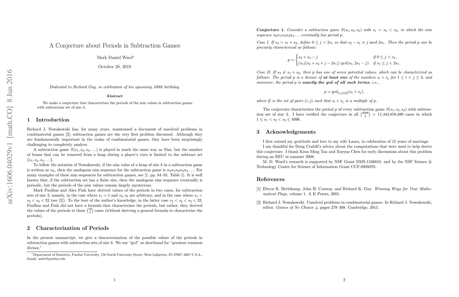 Summary: This paper proposes a conjecture detailing the periodic behavior of nim values in subtraction games where the allowed subtractions are restricted to a set of three numbers. The conjecture aims to provide a comprehensive understanding of the underlying patterns in these games.