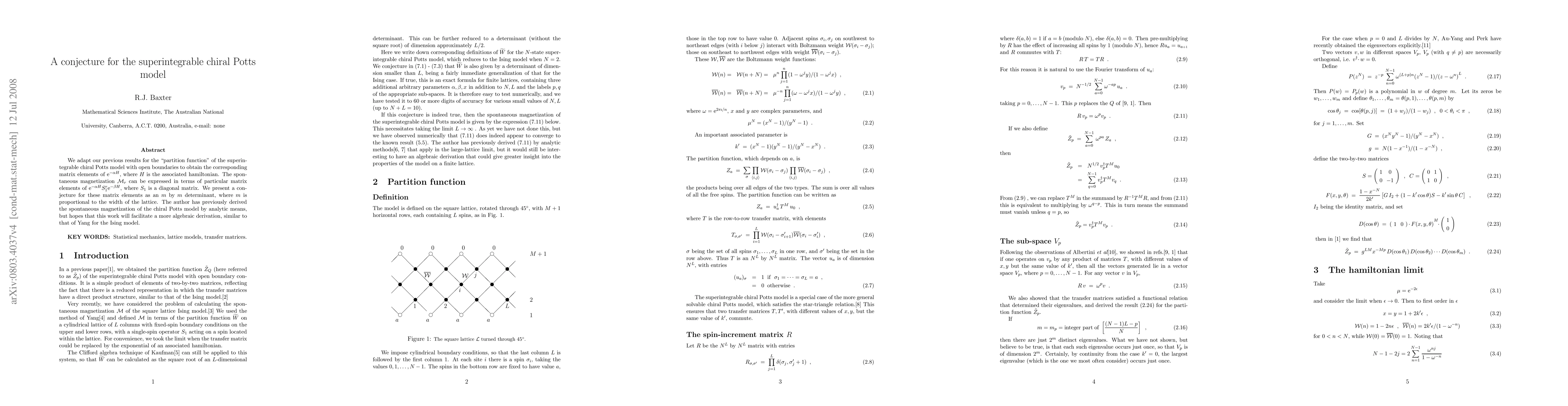 We adapt our previous results for the ``partition function'' of the superintegrable chiral Potts model with open boundaries to obtain the corresponding matrix elements of e^{-\alpha H}, where H is the associated hamiltonian. The spontaneous magnetization M_r can be expressed in terms of particular matrix elements of e^{-\alpha H} S^r_1 \e^{-\beta H}, where S_1 is a diagonal matrix.We present a conjecture for these matrix elements as an m by m determinant, where m is proportional to the width of the lattice. The author has previously derived the spontaneous magnetization of the chiral Potts model by analytic means, but hopes that this work will facilitate a more algebraic derivation, similar to that of Yang for the Ising model.