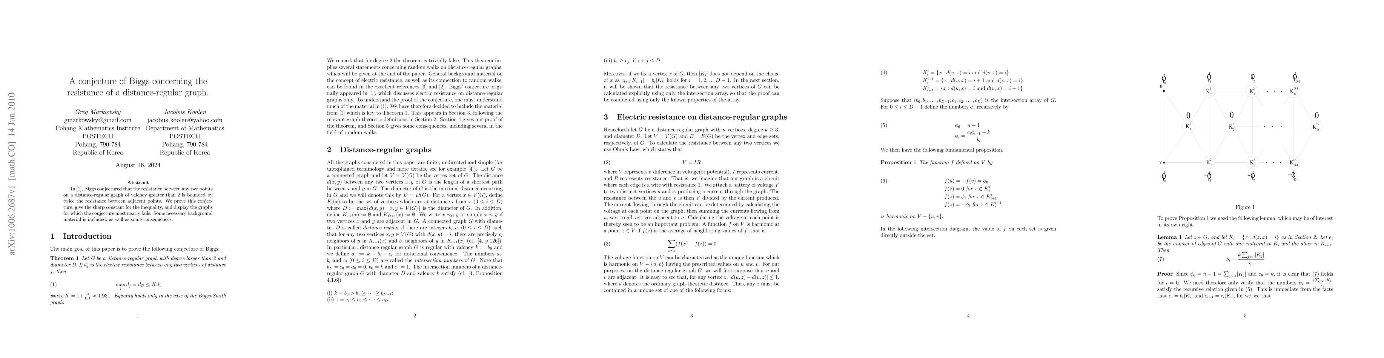 This paper proves Biggs' conjecture that the resistance between any two points on a distance-regular graph of valency greater than 2 is bounded by twice the resistance between adjacent points, providing the exact constant for the inequality and identifying graphs where the conjecture is nearly violated.