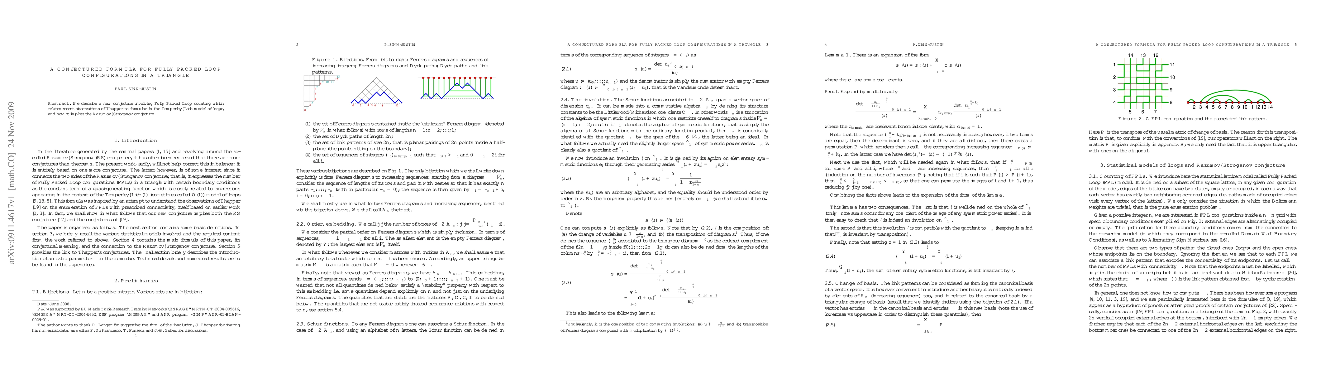 This paper proposes a new conjecture linking Fully Packed Loop configurations in a triangle to the Temperley-Lieb model, suggesting a formula that supports the Razumov-Stroganov conjecture. The conjecture is based on recent observations by Thapper.