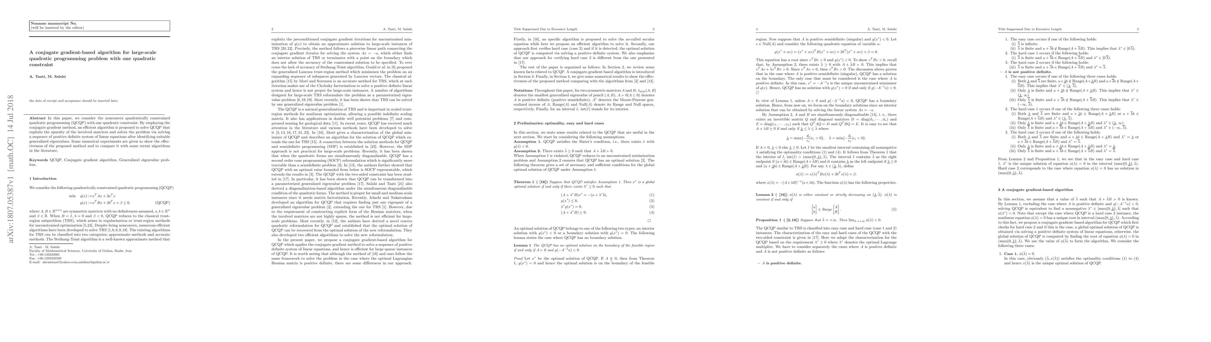 This paper proposes a conjugate gradient-based algorithm to efficiently solve nonconvex quadratically constrained quadratic programming (QCQP) problems with one quadratic constraint. The method leverages matrix sparsity and solves the problem via a sequence of positive definite linear systems, demonstrating effectiveness through numerical experiments and comparisons with recent algorithms.
