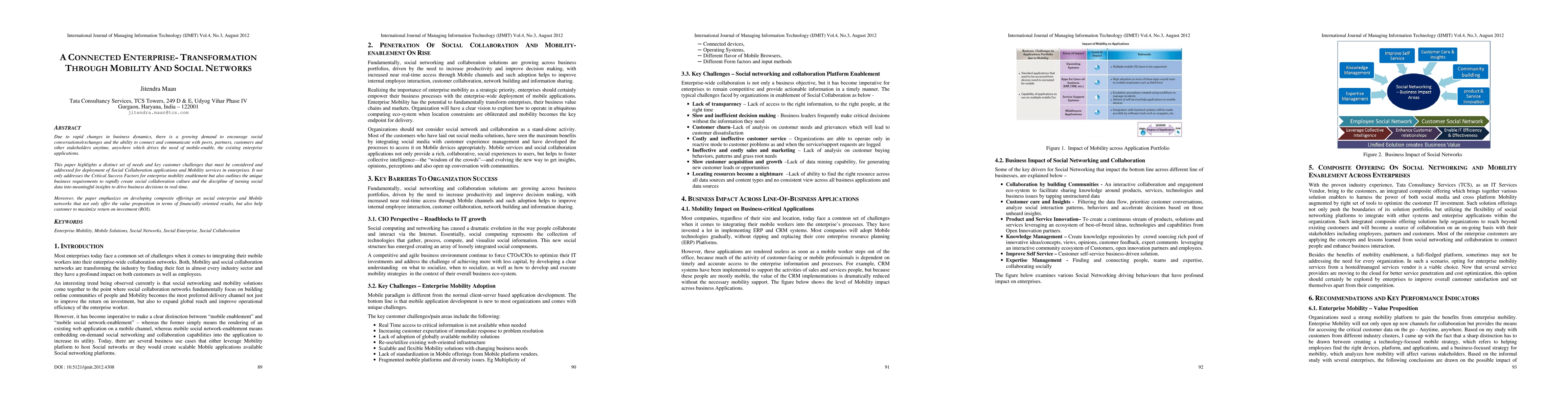 This paper explores the transformative potential of mobile-enabled enterprise applications and social collaboration networks, addressing key challenges and success factors for their deployment. It emphasizes creating a culture of social collaboration and leveraging social data for real-time business insights to drive ROI.