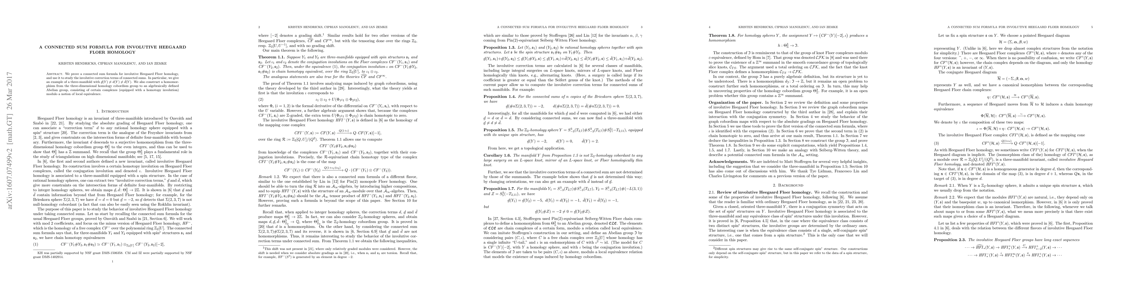 Summary: This paper proves a connected sum formula for involutive Heegaard Floer homology and explores its correction terms, providing a case where the involutive $\underline{d}$, $d$, and $\overline{d}$ values differ. It also constructs a homomorphism linking three-dimensional homology cobordism with Abelian groups of homotopy involution complexes.