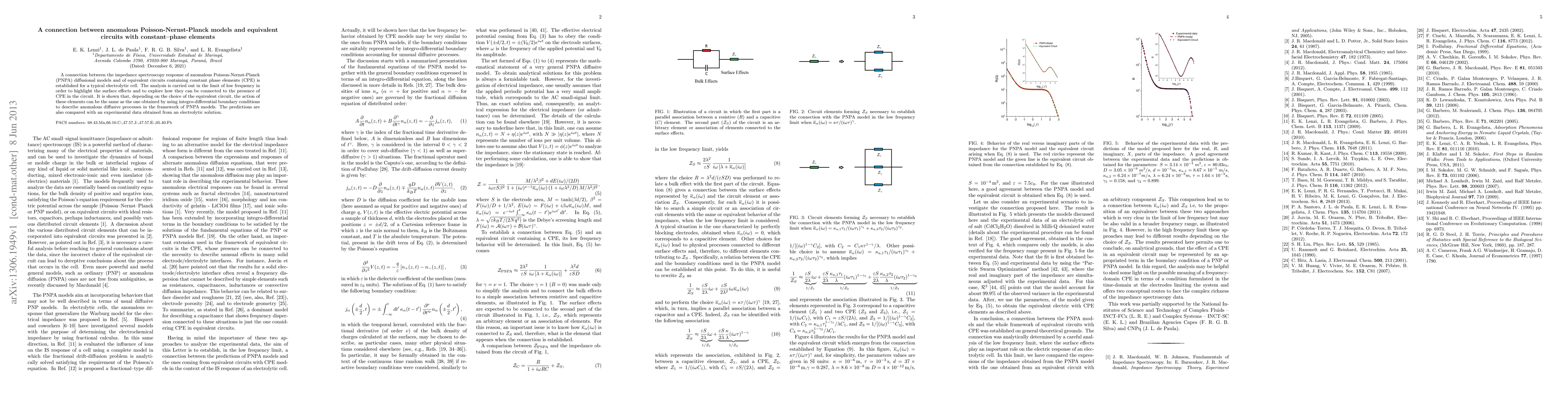 This paper establishes a link between anomalous Poisson-Nernst-Planck diffusion models and equivalent circuits with constant-phase elements, focusing on low frequency responses to highlight surface effects. The study shows that constant-phase elements can mimic the behavior of integro-differential boundary conditions in describing anomalous diffusion, and compares theoretical predictions with experimental electrolytic data.