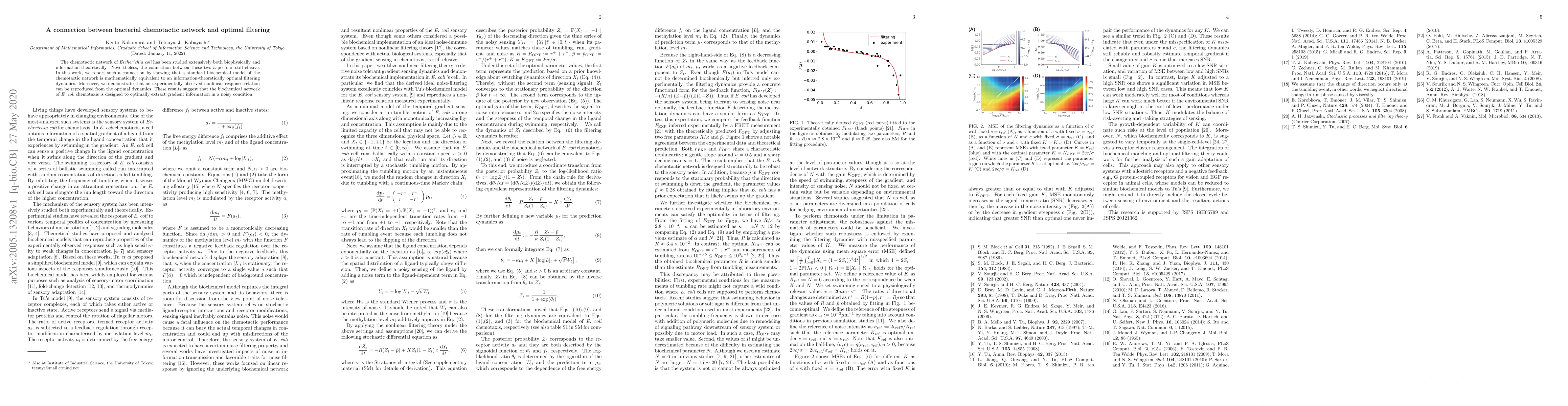A study shows that E. coli's bacterial chemotactic network is mathematically equivalent to an information-theoretically optimal filtering dynamics, suggesting it's designed to extract gradient information in noisy conditions.
