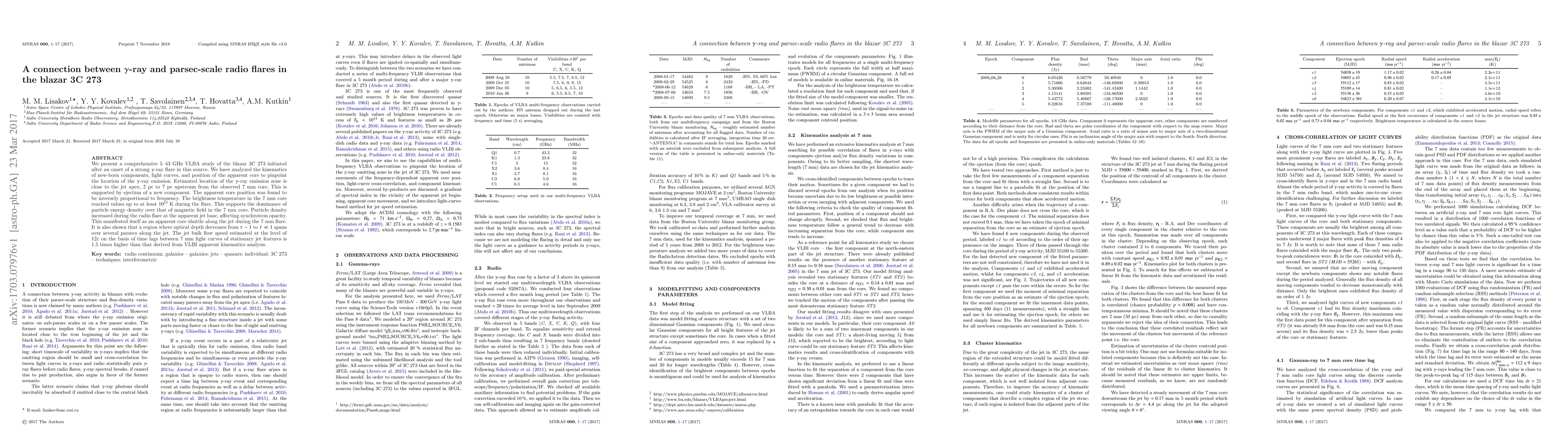 This study investigates the relationship between $\gamma$-ray flares and parsec-scale radio flares in the blazar 3C 273, revealing that $\gamma$-ray emission likely originates near the jet apex, 2-7 pc upstream from the 7 mm core. The analysis shows a significant increase in particle density during the radio flare, affecting synchrotron opacity and causing the apparent core to shift along the jet.