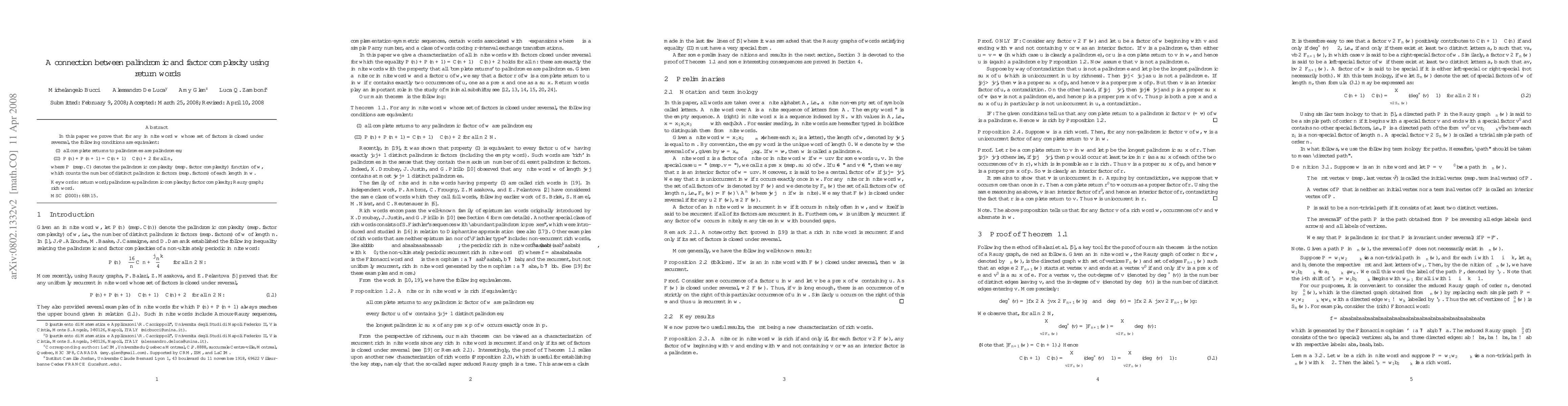 This paper establishes a link between palindromic and factor complexity in infinite words whose factor sets are closed under reversal. It proves that complete returns to palindromes being palindromes is equivalent to a specific relationship between palindromic and factor complexity functions.