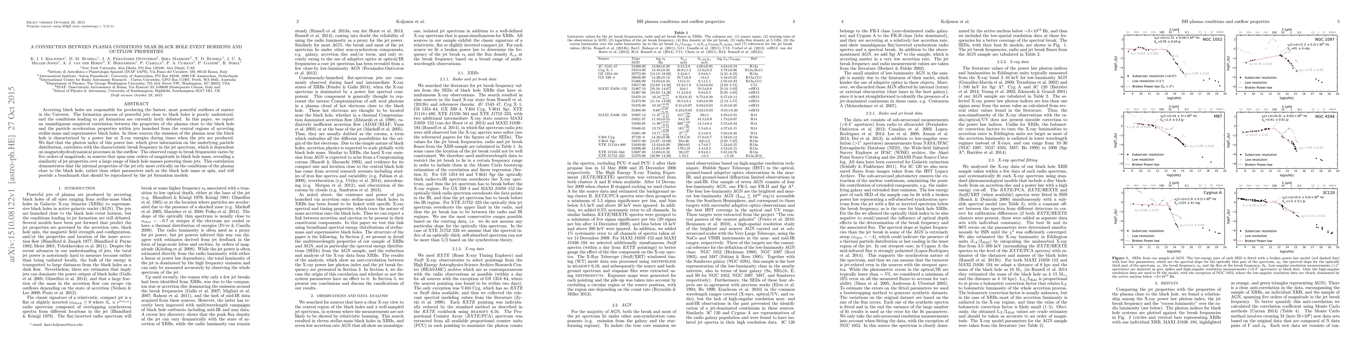 Accreting black holes are responsible for producing the fastest, most powerful outflows of matter in the Universe. The formation process of powerful jets close to black holes is poorly understood, and the conditions leading to jet formation are currently hotly debated. In this paper, we report an unambiguous empirical correlation between the properties of the plasma close to the black hole and the particle acceleration properties within jets launched from the central regions of accreting stellar-mass and supermassive black holes. In these sources the emission of the plasma near the black hole is characterized by a power law at X-ray energies during times when the jets are produced. We find that the photon index of this power law, which gives information on the underlying particle distribution, correlates with the characteristic break frequency in the jet spectrum, which is dependent on magnetohydrodynamical processes in the outflow. The observed range in break frequencies varies by five orders of magnitude, in sources that span nine orders of magnitude in black hole mass, revealing a similarity of jet properties over a large range of black hole masses powering these jets. This correlation demonstrates that the internal properties of the jet rely most critically on the conditions of the plasma close to the black hole, rather than other parameters such as the black hole mass or spin, and will provide a benchmark that should be reproduced by the jet formation models.