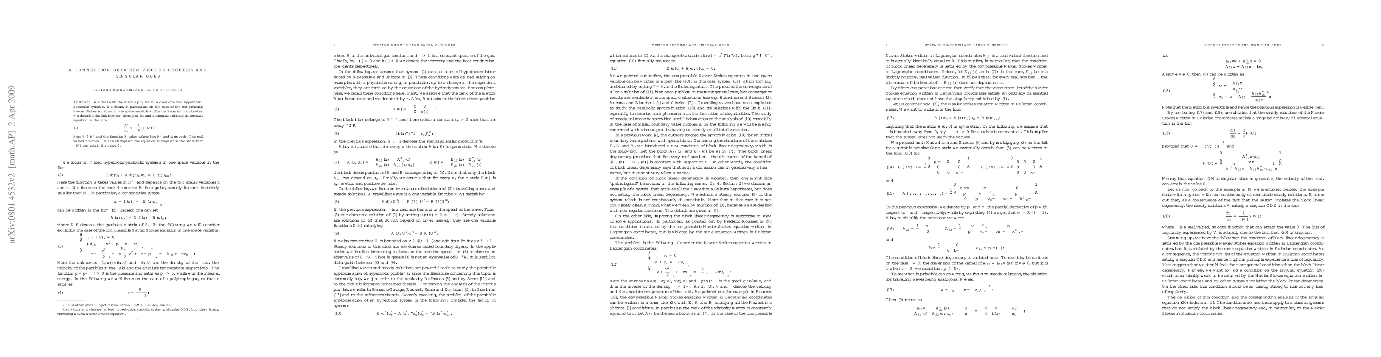 This research establishes a link between viscous profiles in mixed hyperbolic-parabolic systems, specifically the compressible Navier-Stokes equation, and singular ordinary differential equations. The connection is demonstrated through an equation where the derivative of V is proportional to F(V) divided by a regular function z(V), which can be zero, making the equation singular.