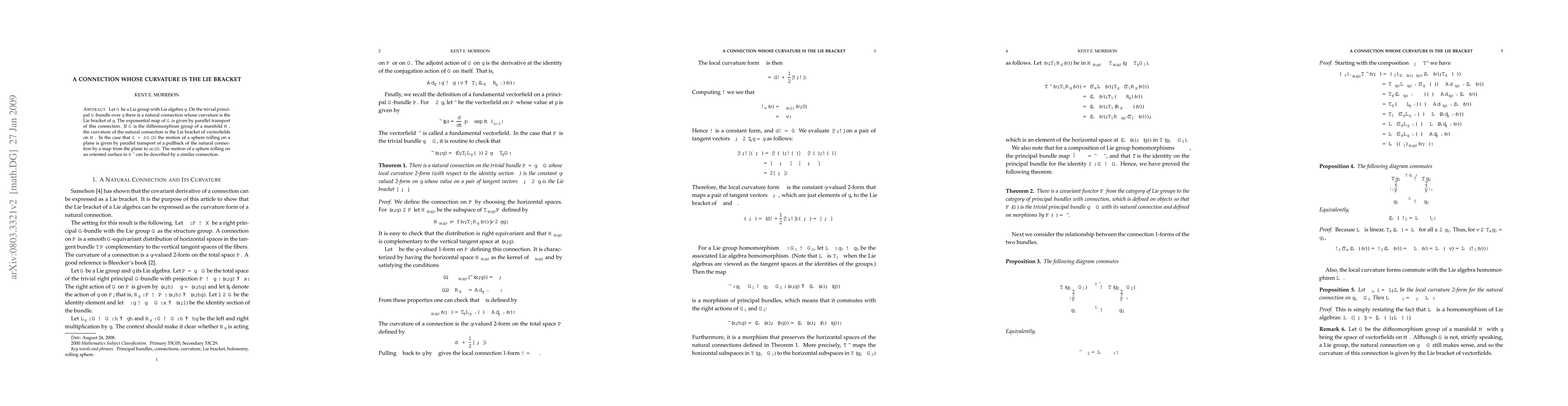 Let G be a Lie group. On the trivial principal G-bundle over the Lie algebra of G there is a natural connection whose curvature is the Lie bracket. The exponential map is given by parallel transport of this connection. If G is the diffeomorphism group of a manifold, the curvature of the natural connection is the Lie bracket of vectorfields on the manifold. The motion of a ball rolling on an oriented surface is the parallel transport of a similar connection on the trivial SO(3)-bundle over the surface. If the surface is a plane or a sphere, then the curvature of the connection is a scalar multiple of the Lie bracket in the Lie algebra of SO(3).