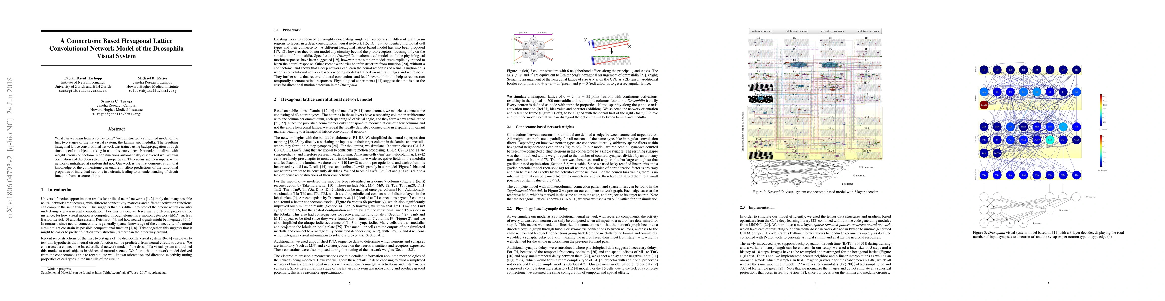 This paper constructs a hexagonal lattice convolutional network model based on the Drosophila visual system's connectome, demonstrating that such models can predict functional properties like orientation and direction selectivity in neurons when initialized with connectome data, unlike random initializations. This suggests that structural knowledge of neural circuits can inform functional predictions.