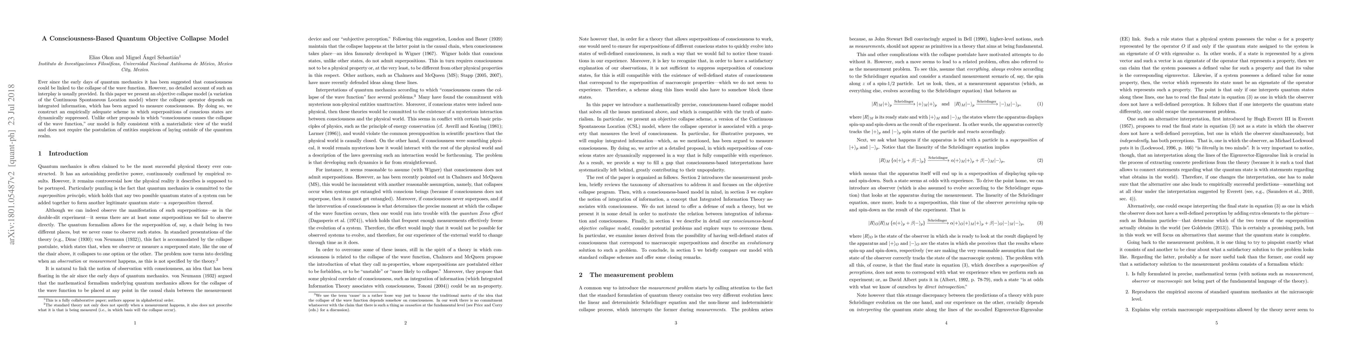 This paper proposes a quantum objective collapse model where the collapse operator is dependent on integrated information, a measure of consciousness, to dynamically suppress superpositions of conscious states. Unlike other models, this approach maintains a materialistic worldview without introducing entities outside the quantum realm.