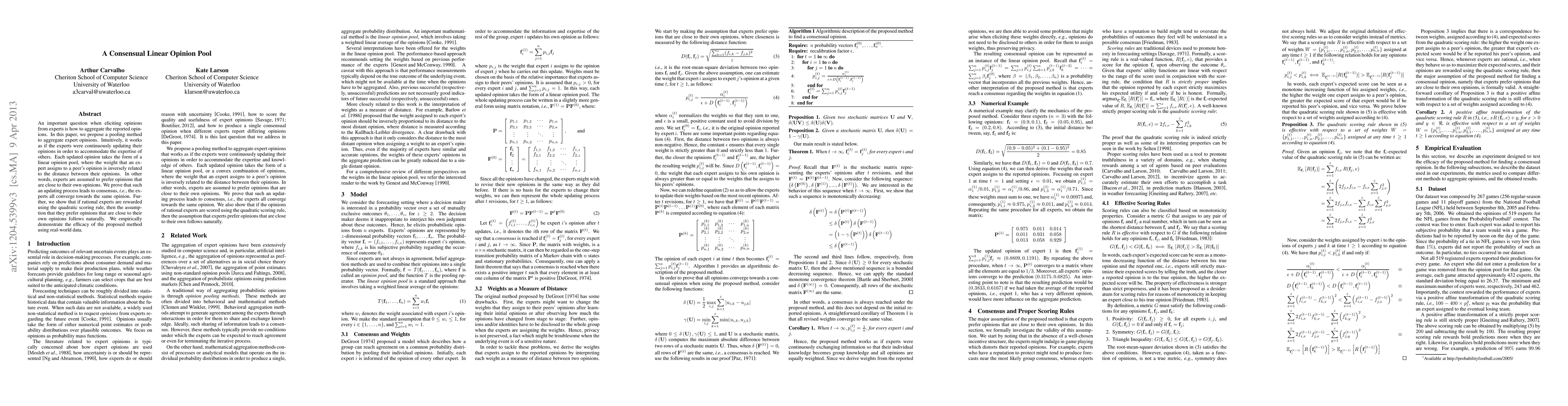 An important question when eliciting opinions from experts is how to aggregate the reported opinions. In this paper, we propose a pooling method to aggregate expert opinions. Intuitively, it works as if the experts were continuously updating their opinions in order to accommodate the expertise of others. Each updated opinion takes the form of a linear opinion pool, where the weight that an expert assigns to a peer's opinion is inversely related to the distance between their opinions. In other words, experts are assumed to prefer opinions that are close to their own opinions. We prove that such an updating process leads to consensus, \textit{i.e.}, the experts all converge towards the same opinion. Further, we show that if rational experts are rewarded using the quadratic scoring rule, then the assumption that they prefer opinions that are close to their own opinions follows naturally. We empirically demonstrate the efficacy of the proposed method using real-world data.