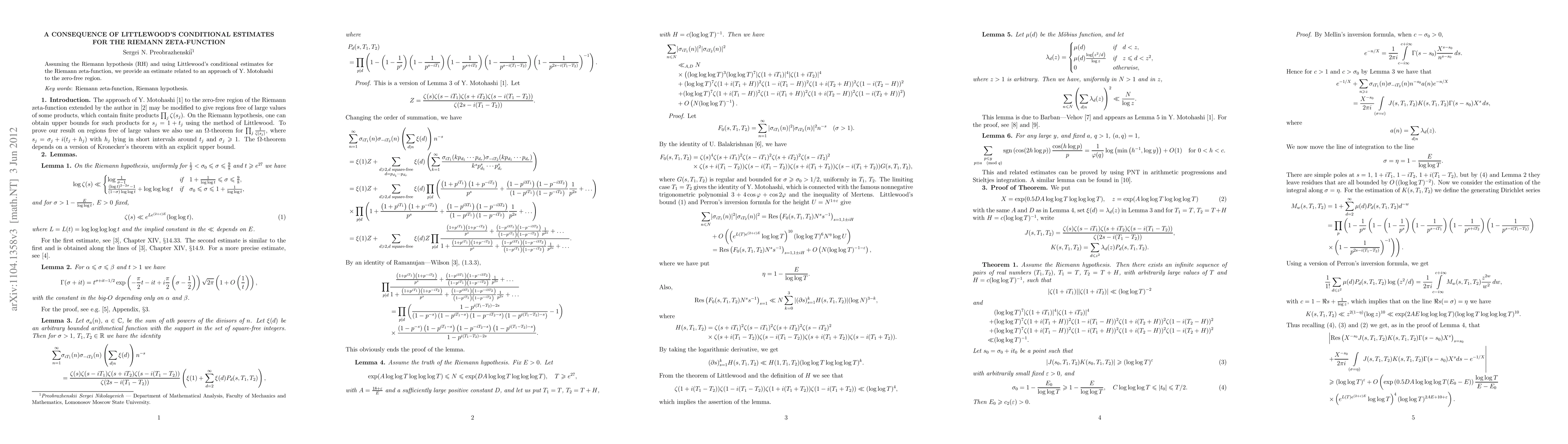 Researchers estimate a consequence of the Riemann hypothesis using Littlewood's conditional estimates for the zeta-function, relating it to an approach by Y. Motohashi.