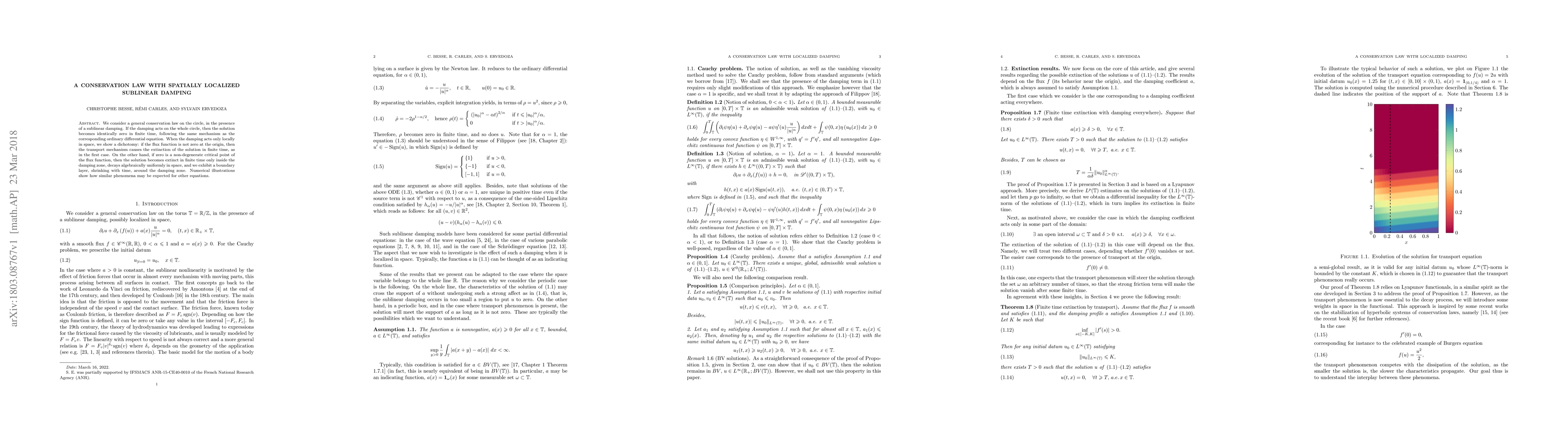 We consider a general conservation law on the circle, in the presence of a sublinear damping. If the damping acts on the whole circle, then the solution becomes identically zero in finite time, following the same mechanism as the corresponding ordinary differential equation. When the damping acts only locally in space, we show a dichotomy: if the flux function is not zero at the origin, then the transport mechanism causes the extinction of the solution in finite time, as in the first case. On the other hand, if zero is a non-degenerate critical point of the flux function, then the solution becomes extinct in finite time only inside the damping zone, decays algebraically uniformly in space, and we exhibit a boundary layer, shrinking with time, around the damping zone. Numerical illustrations show how similar phenomena may be expected for other equations.