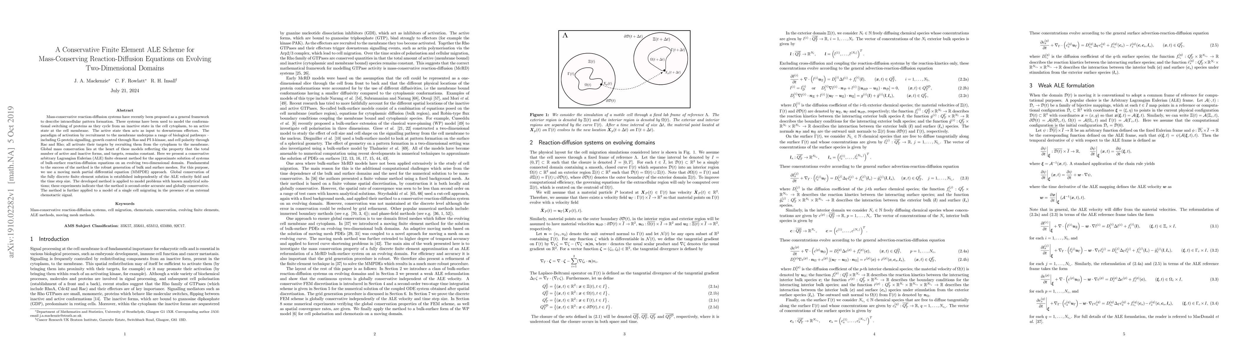 A new method for solving reaction-diffusion equations on evolving domains has been developed, ensuring mass conservation and accuracy of up to second order. This approach is useful for modeling biological processes like cell migration and signaling.