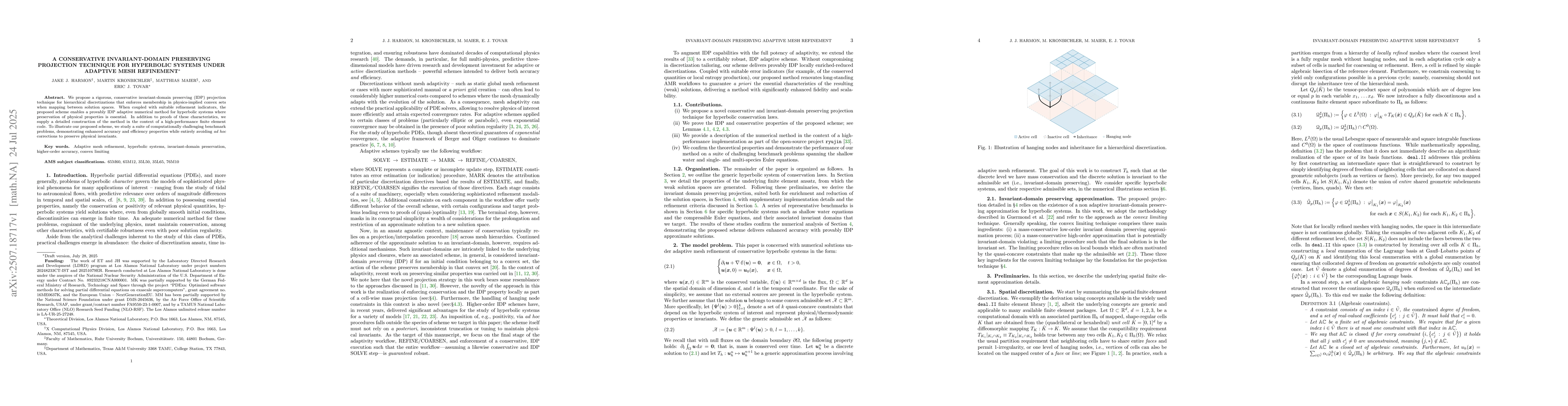 This research introduces a rigorous, conservative method ensuring physical properties are preserved in numerical solutions of hyperbolic systems. The technique, combined with adaptive mesh refinement, maintains membership in physics-implied convex sets, enhancing accuracy and efficiency without ad hoc corrections, as demonstrated through benchmark problem studies.
