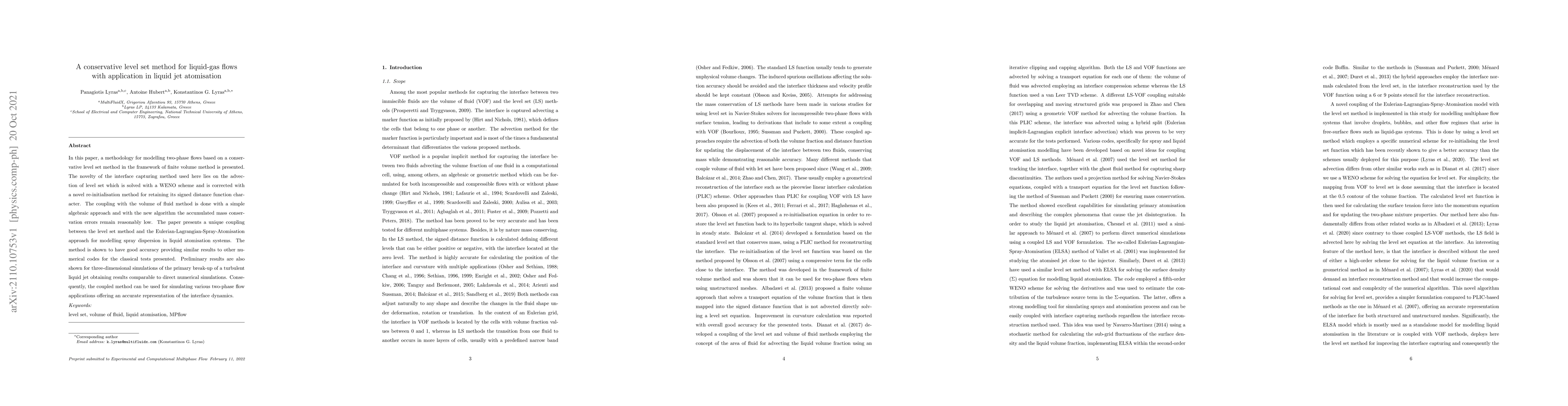 This paper introduces a conservative level set method for modelling liquid-gas flows, employing a WENO scheme for level set advection and a novel re-initialisation method to maintain its signed distance property. The method is coupled with the volume of fluid approach and applied to simulate liquid jet atomisation, demonstrating accurate results comparable to direct numerical simulations.