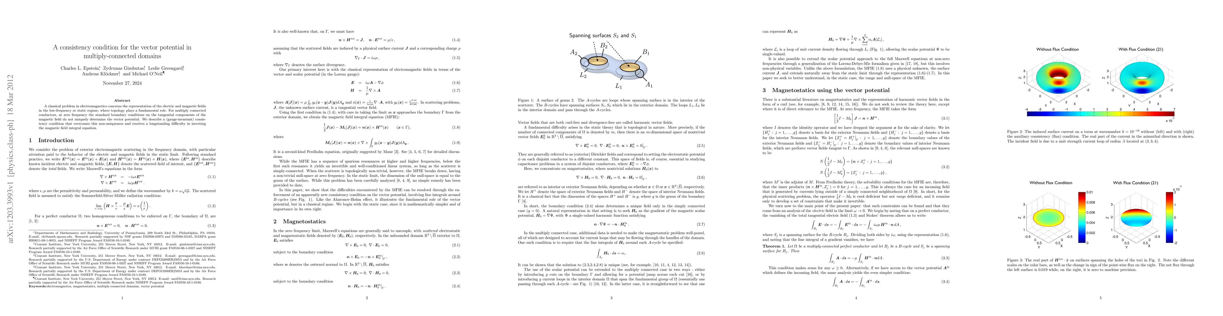 A classical problem in electromagnetics concerns the representation of the electric and magnetic fields in the low-frequency or static regime, where topology plays a fundamental role. For multiply connected conductors, at zero frequency the standard boundary conditions on the tangential components of the magnetic field do not uniquely determine the vector potential. We describe a (gauge-invariant) consistency condition that overcomes this non-uniqueness and resolves a longstanding difficulty in inverting the magnetic field integral equation.