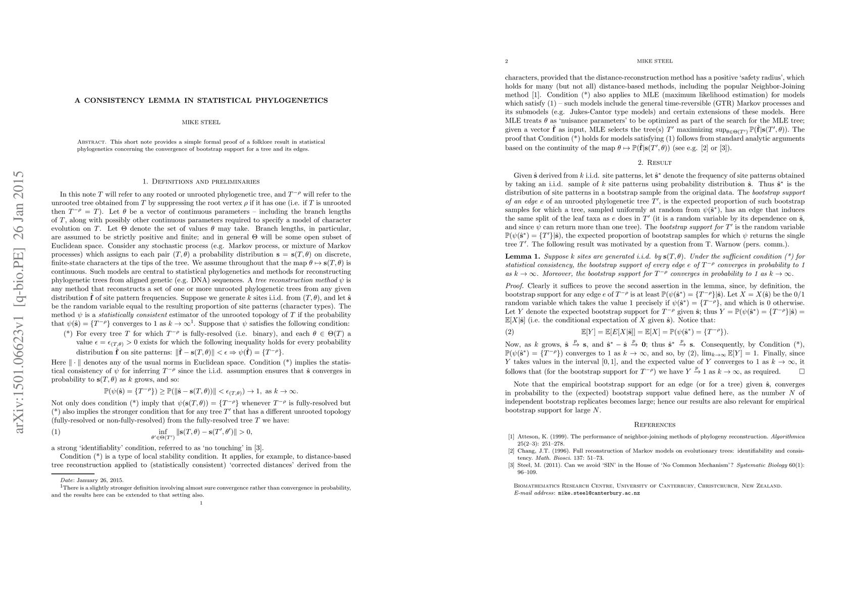 Summary: This paper offers a straightforward formal proof for a well-known result in statistical phylogenetics, demonstrating the convergence of bootstrap support for both trees and their edges. The proof aims to solidify the understanding of this convergence in the field.