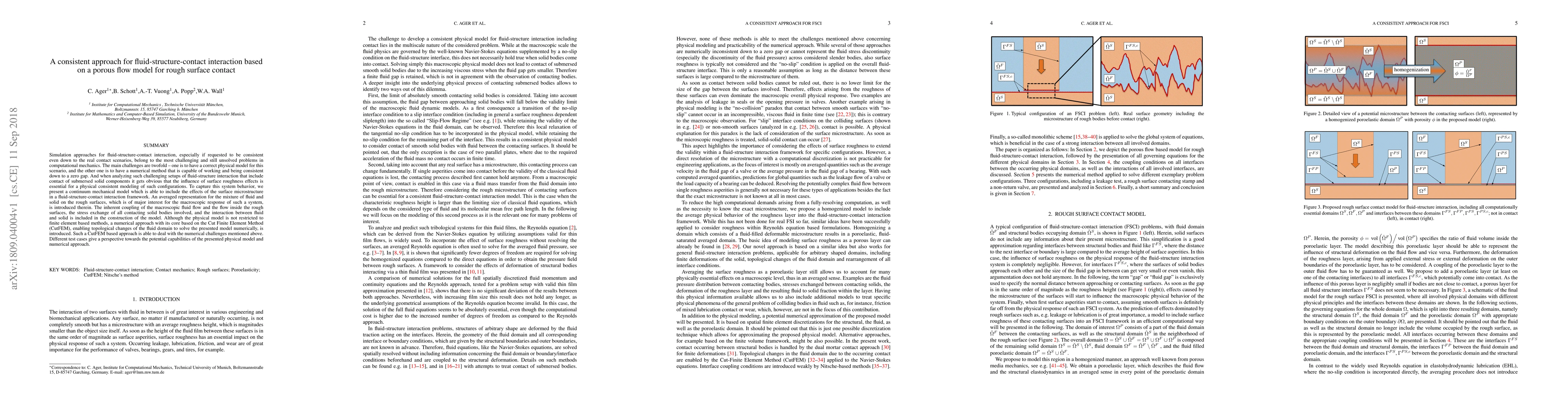 Researchers developed a new model for fluid-structure-contact interaction that includes surface roughness effects, providing a more accurate physical representation of complex systems, and introduced a numerical approach using the Cut Finite Element Method to solve it numerically.