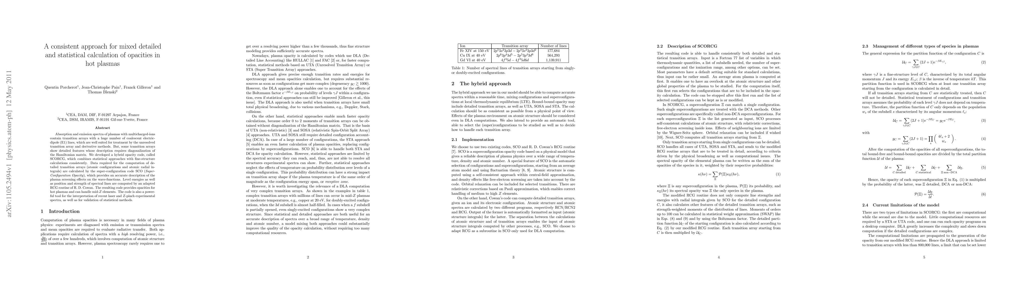 Researchers developed a hybrid opacity code that combines statistical approaches with fine-structure calculations for hot plasmas, providing accurate opacities for mid-Z elements and enabling interpretation of experimental spectra.