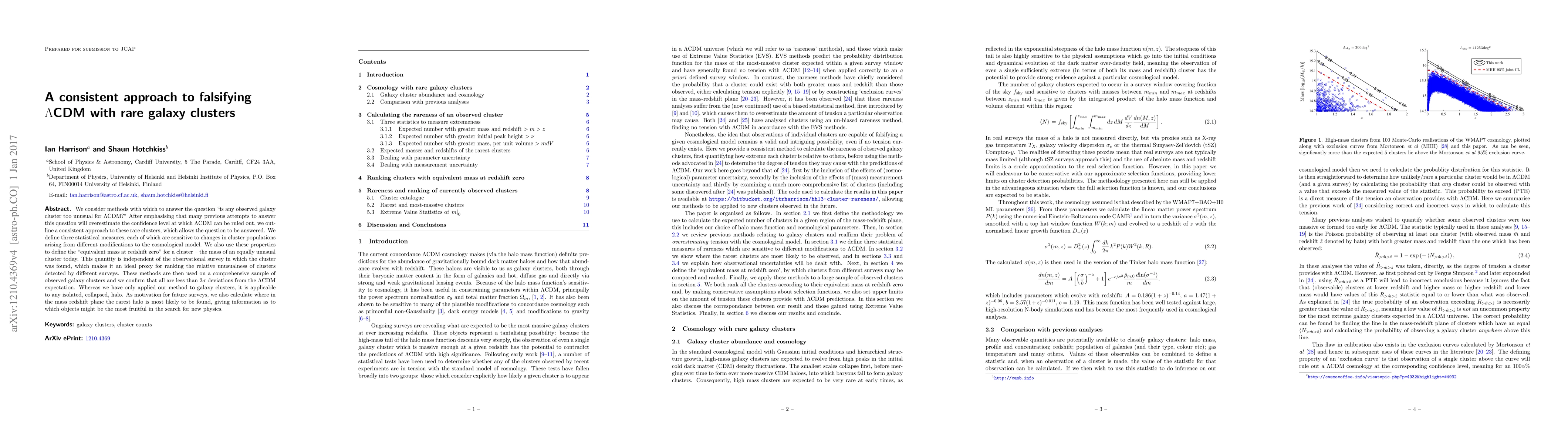 We consider methods with which to answer the question "is any observed galaxy cluster too unusual for Lambda-CDM?" After emphasising that many previous attempts to answer this question will overestimate the confidence level at which Lambda-CDM can be ruled out, we outline a consistent approach to these rare clusters, which allows the question to be answered. We define three statistical measures, each of which are sensitive to changes in cluster populations arising from different modifications to the cosmological model. We also use these properties to define the 'equivalent mass at redshift zero' for a cluster --- the mass of an equally unusual cluster today. This quantity is independent of the observational survey in which the cluster was found, which makes it an ideal proxy for ranking the relative unusualness of clusters detected by different surveys. These methods are then used on a comprehensive sample of observed galaxy clusters and we confirm that all are less than 2-sigma deviations from the Lambda-CDM expectation. Whereas we have only applied our method to galaxy clusters, it is applicable to any isolated, collapsed, halo. As motivation for future surveys, we also calculate where in the mass redshift plane the rarest halo is most likely to be found, giving information as to which objects might be the most fruitful in the search for new physics.