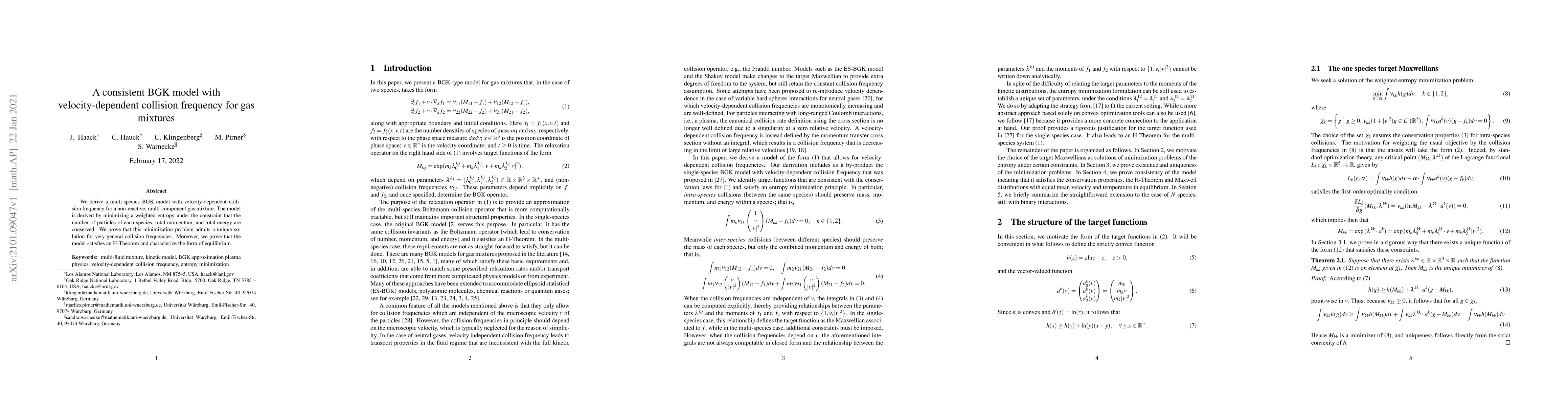 This paper develops a consistent multi-species BGK model for gas mixtures with velocity-dependent collision frequencies, derived by minimizing weighted entropy while conserving particle number, momentum, and energy. The model is shown to have a unique solution and satisfies an H-Theorem, defining its equilibrium form.