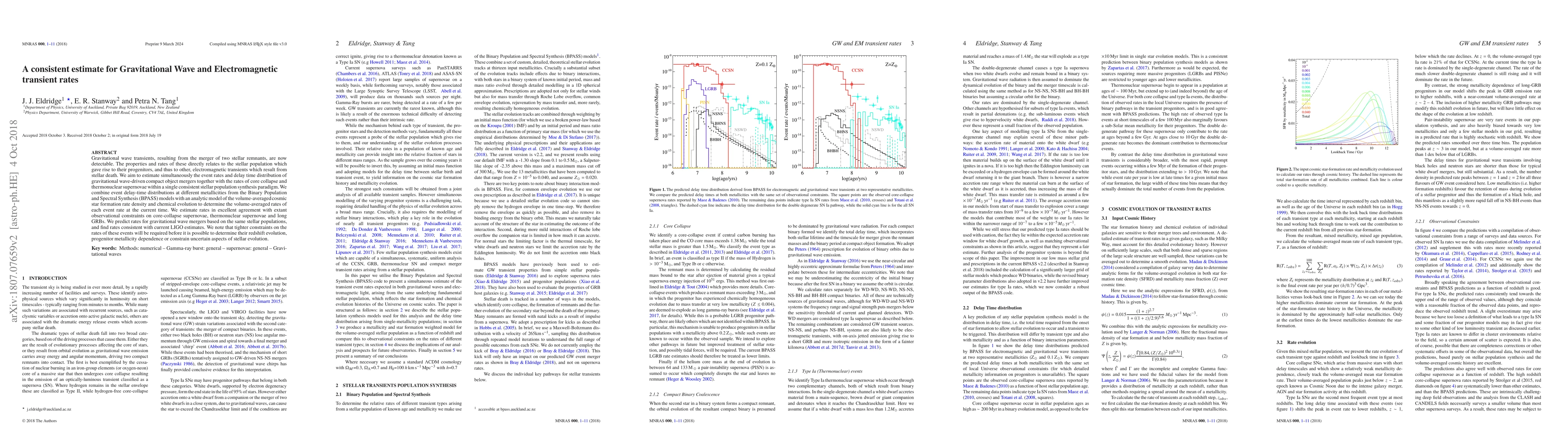 This paper estimates the rates of gravitational wave mergers and electromagnetic transients like supernovae using a consistent stellar population synthesis model. The study finds agreement with current observational data and predicts consistent rates for gravitational wave events, though more precise constraints are needed for further analysis.