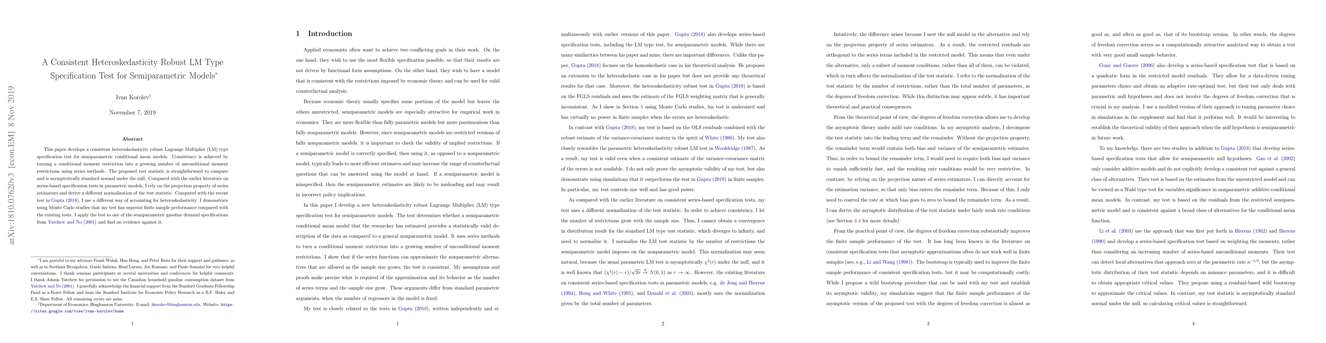 This paper proposes a consistent heteroskedasticity robust LM test for semiparametric conditional mean models, utilizing series methods to transform conditional moment restrictions into unconditional ones. The test outperforms existing methods in Monte Carlo studies and is applied to a semiparametric gasoline demand model.