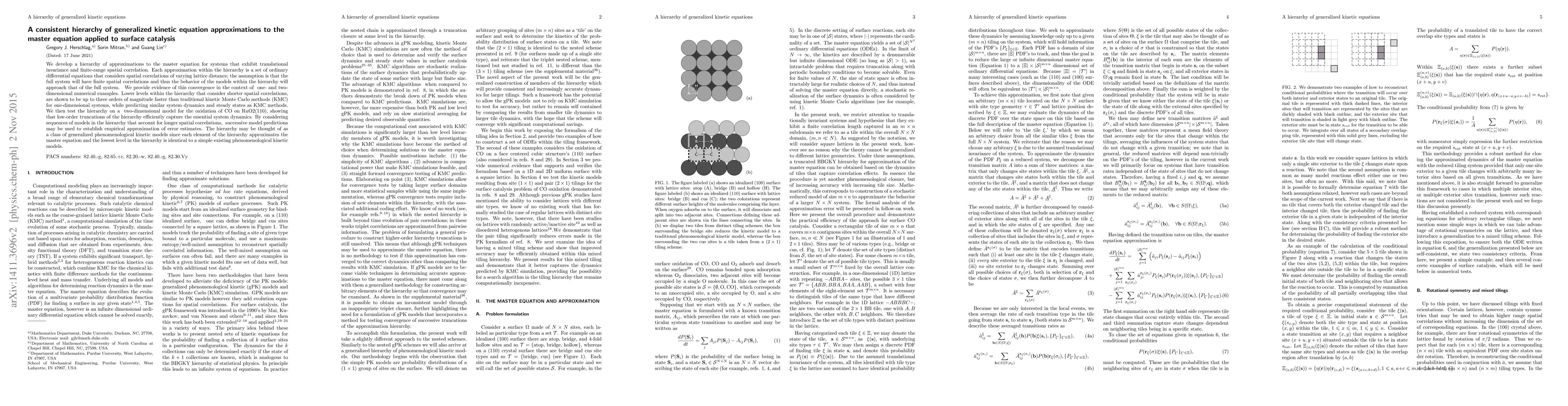 We develop a hierarchy of approximations to the master equation for systems that exhibit translational invariance and finite-range spatial correlation. Each approximation within the hierarchy is a set of ordinary differential equations that considers spatial correlations of varying lattice distance; the assumption is that the full system will have finite spatial correlations and thus the behavior of the models within the hierarchy will approach that of the full system. We provide evidence of this convergence in the context of one- and two-dimensional numerical examples. Lower levels within the hierarchy that consider shorter spatial correlations, are shown to be up to three orders of magnitude faster than traditional kinetic Monte Carlo methods (KMC) for one-dimensional systems, while predicting similar system dynamics and steady states as KMC methods. We then test the hierarchy on a two-dimensional model for the oxidation of CO on RuO2(110), showing that low-order truncations of the hierarchy efficiently capture the essential system dynamics. By considering sequences of models in the hierarchy that account for longer spatial correlations, successive model predictions may be used to establish empirical approximation of error estimates. The hierarchy may be thought of as a class of generalized phenomenological kinetic models since each element of the hierarchy approximates the master equation and the lowest level in the hierarchy is identical to a simple existing phenomenological kinetic models.