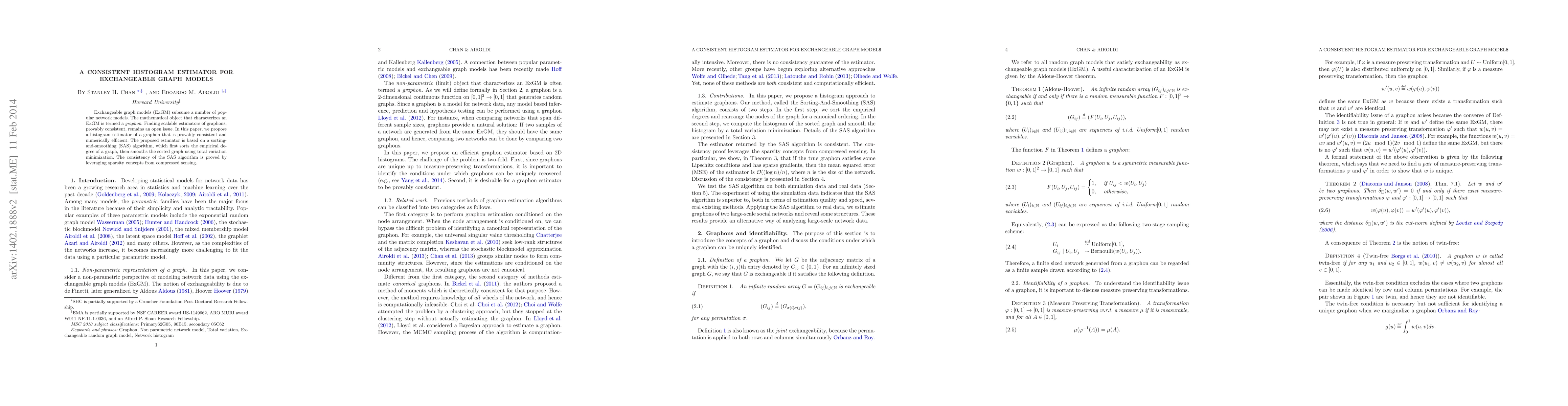 Exchangeable graph models (ExGM) subsume a number of popular network models. The mathematical object that characterizes an ExGM is termed a graphon. Finding scalable estimators of graphons, provably consistent, remains an open issue. In this paper, we propose a histogram estimator of a graphon that is provably consistent and numerically efficient. The proposed estimator is based on a sorting-and-smoothing (SAS) algorithm, which first sorts the empirical degree of a graph, then smooths the sorted graph using total variation minimization. The consistency of the SAS algorithm is proved by leveraging sparsity concepts from compressed sensing.